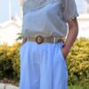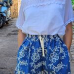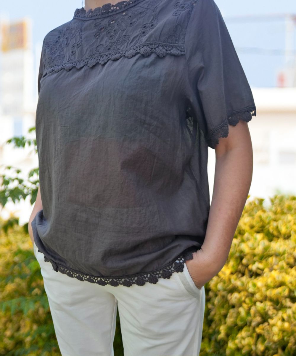 Zwiewna bluzka z krótkim rękawem , uszyta z bawełny . Subtelne detale , takie jak koronki , dodają jej uroku