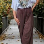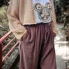 Bluzka satynowa z dużym motywem misia – elegancja spotyka się z nutą humoru.