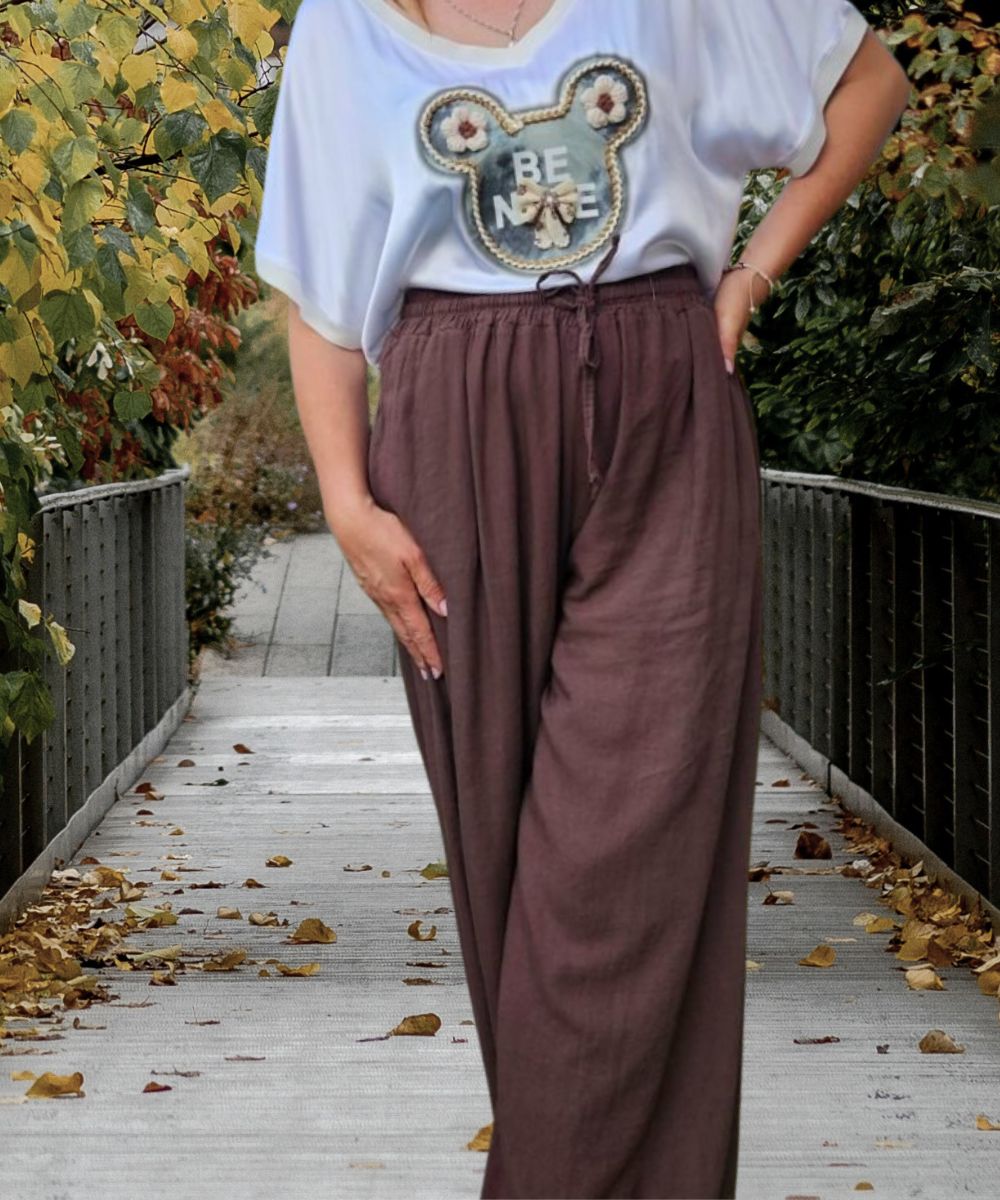 Elegancka bluzka z misiem na przodzie , naszywana z ozdobnymi na uszach kwiatami, materiał naturalny . Bluzka jest włoskiej produkcji