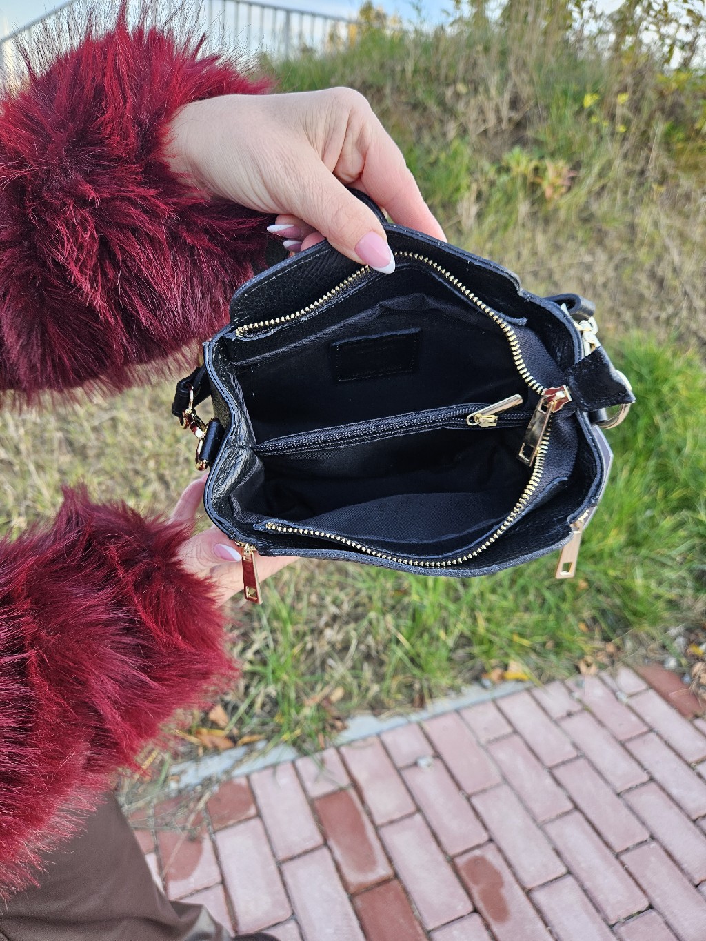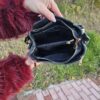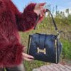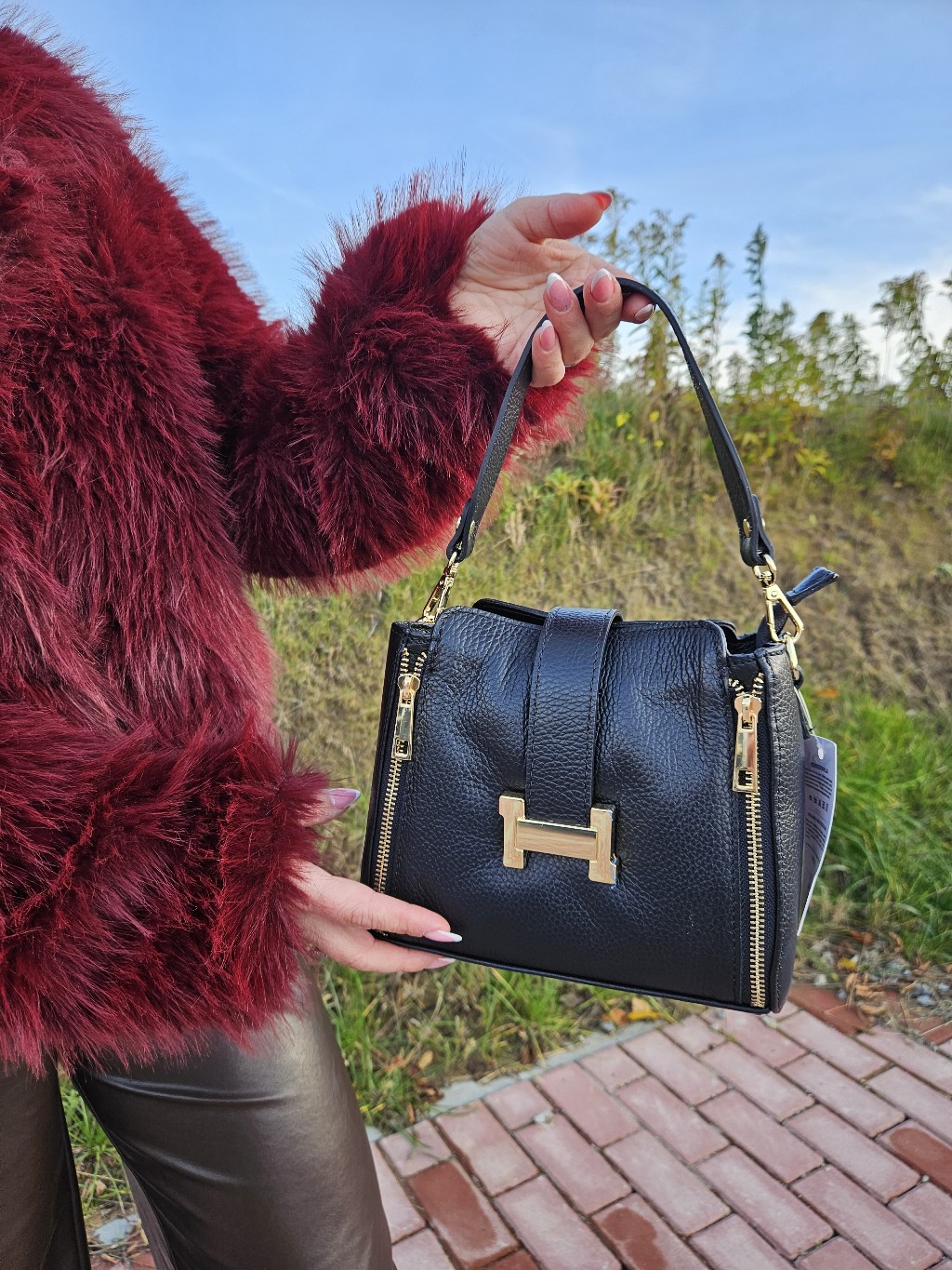 Skórzana torebka z dekoracyjnymi zasówkami