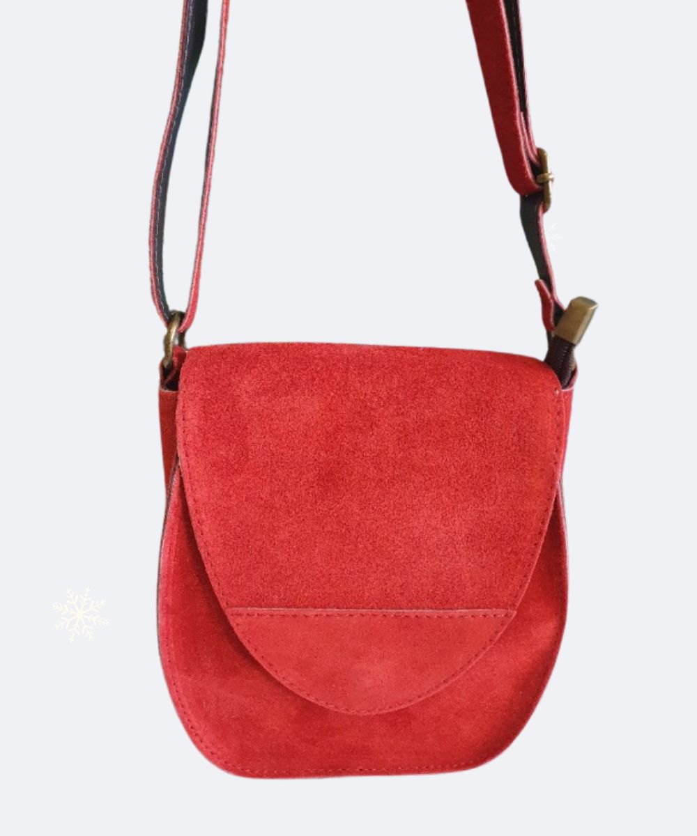 Mała listonoszka ze skóry naturalnej jest prostą klasyczna torebką . Torebka zamyka sie na klapkę z klipsem i na zamek pod klapką . W środku torebki jest kieszonka wsuwana na telefon , torebka posiada regulowany pasek na ramię