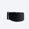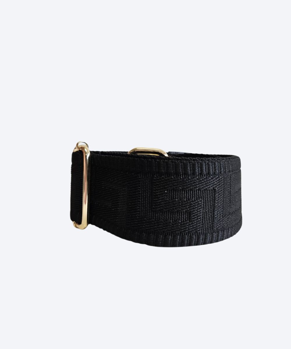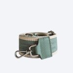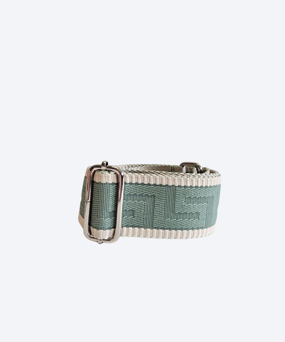 Pasek wykonany jest z szerokiej, wytrzymałej taśmy materiałowej Wzór na taśmie ma delikatną, geometryczną fakturę. Na końcach paska znajdują się czarne wstawki ze skóry naturalnej lub ekologicznej, które wzmacniają miejsca mocowania. Do paska przymocowany jest solidny, srebrny karabińczyk, który umożliwia łatwe przypięcie do torby lub innego akcesorium. Metalowe elementy mają gładkie, błyszczące wykończenie. Tego typu pasek najczęściej stosuje się jako pasek na ramię do torebek, toreb podróżnych lub aktówek. Dzięki szerokiej taśmie jest wygodny w noszeniu i dobrze rozkłada ciężar.