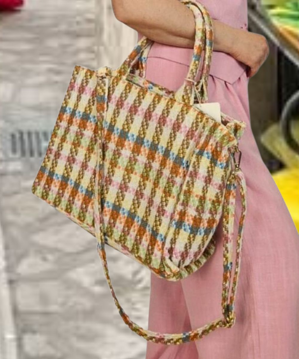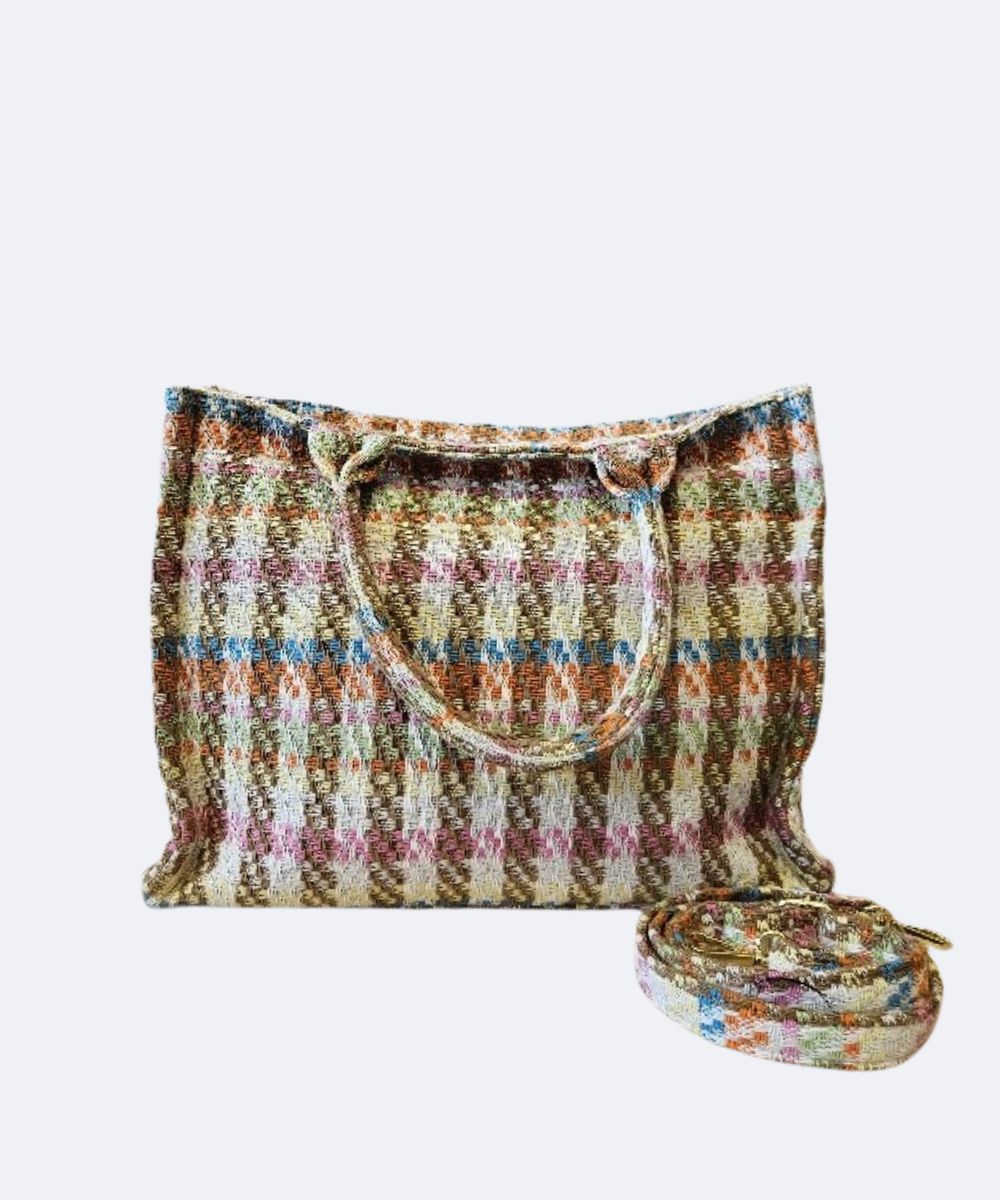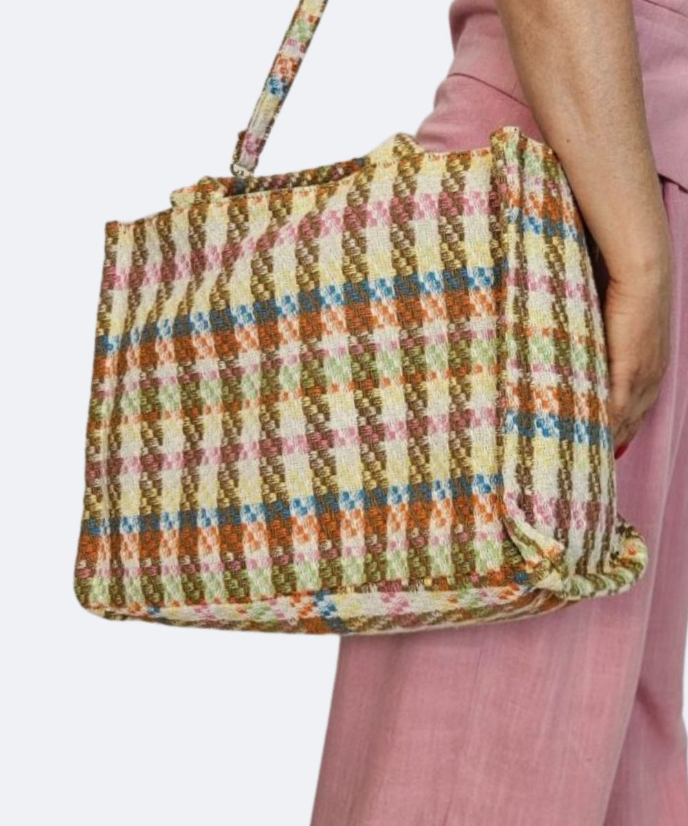 Torebka shopper A4 materiałowa z dopinanym paskiem na ramię.