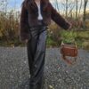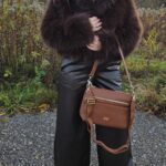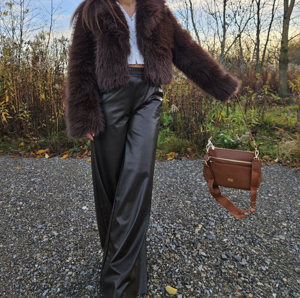 Torebka skórzana z dwoma kieszeniami.