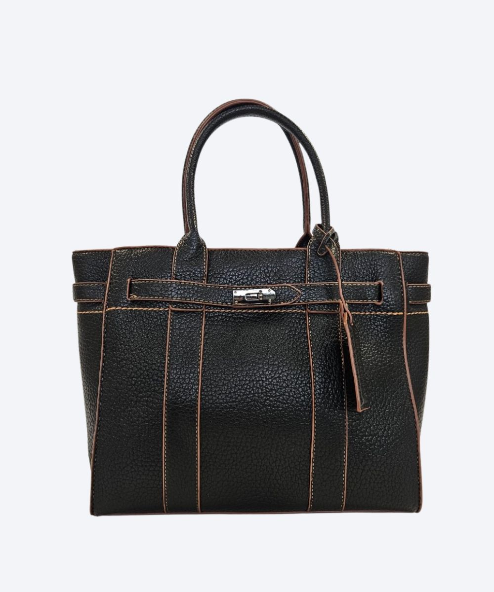 Torebka damska z tworzywa to luksusowa torebka klasyczna z ozdobnym paskiem ze srebrną ozdobą i breloczkiem .