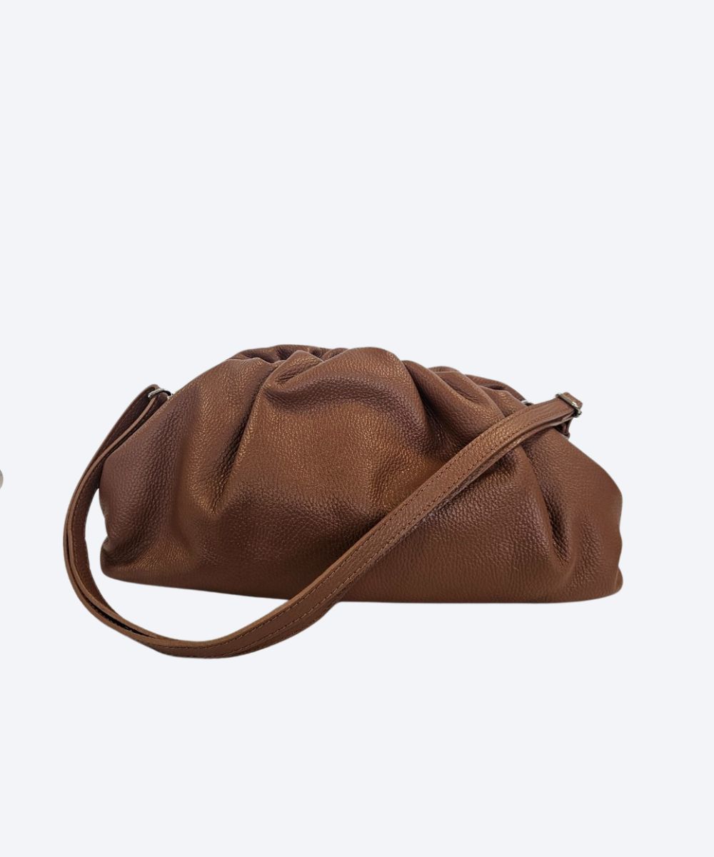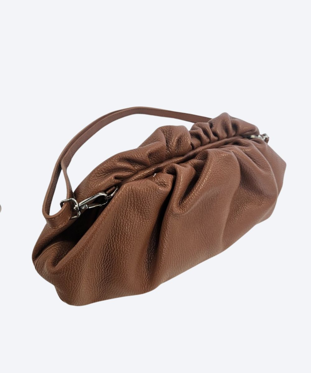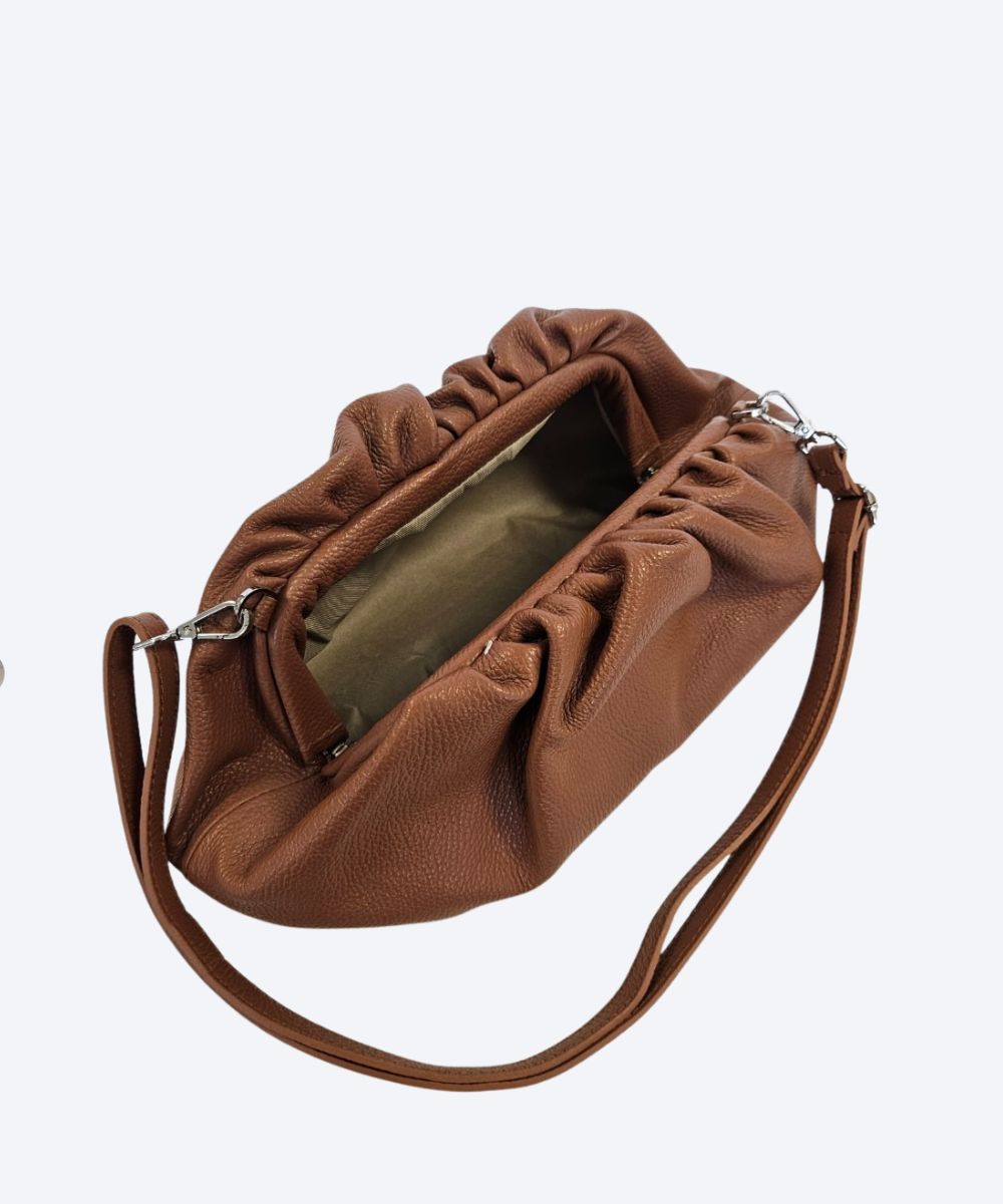 Torebka ze skóry naturalnej z marszczeniem przy zamknięciu .