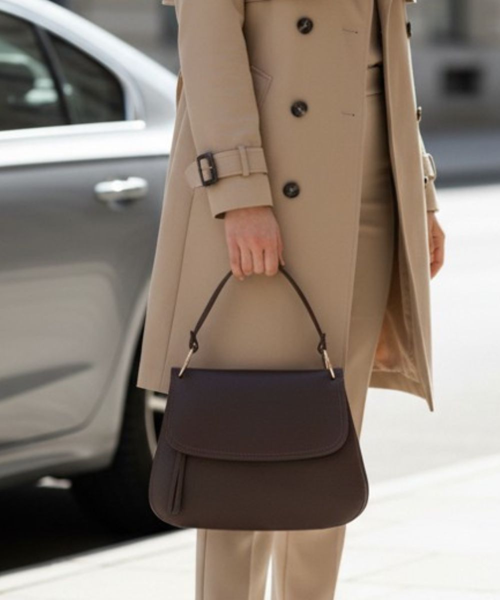 Klasyczna torebka z dwoma klapkami i kieszonkami na zasuwkę z przodu
