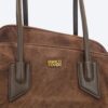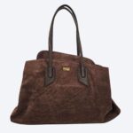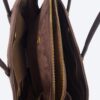 - Detale: Na froncie, pośrodku, znajduje się mała naszywka z wytłoczonym złotym napisem “ENRICO COVERI”. Rączki mocowane są do torebki za pomocą charakterystycznych, trapezoidalnych skórzanych elementów.