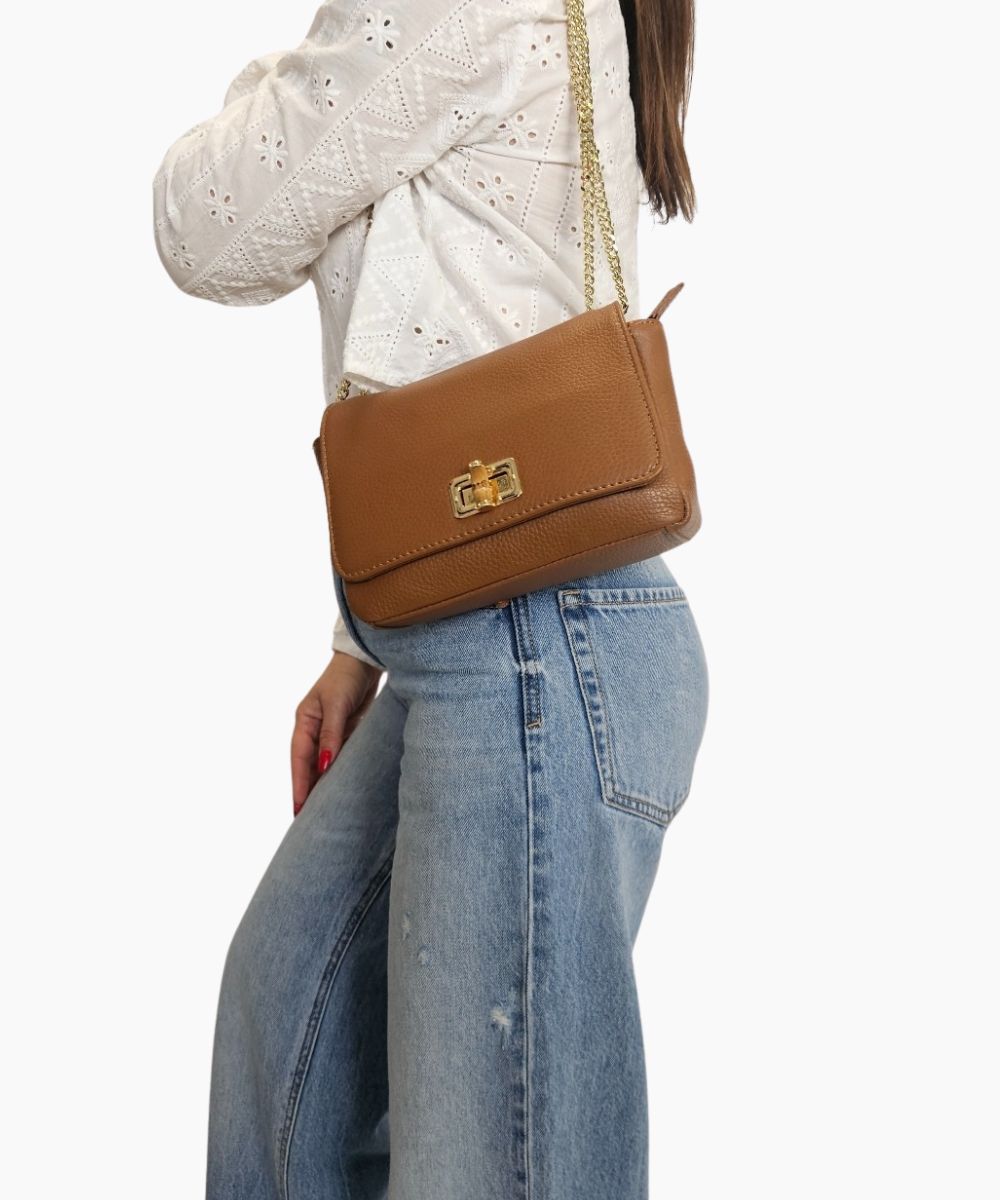 Listonoszka skórzana , mała i pojemna torebka , ktora zmieści telefon , portfel i inne drobiazgi . W środku znajduje się kieszonka na zamek