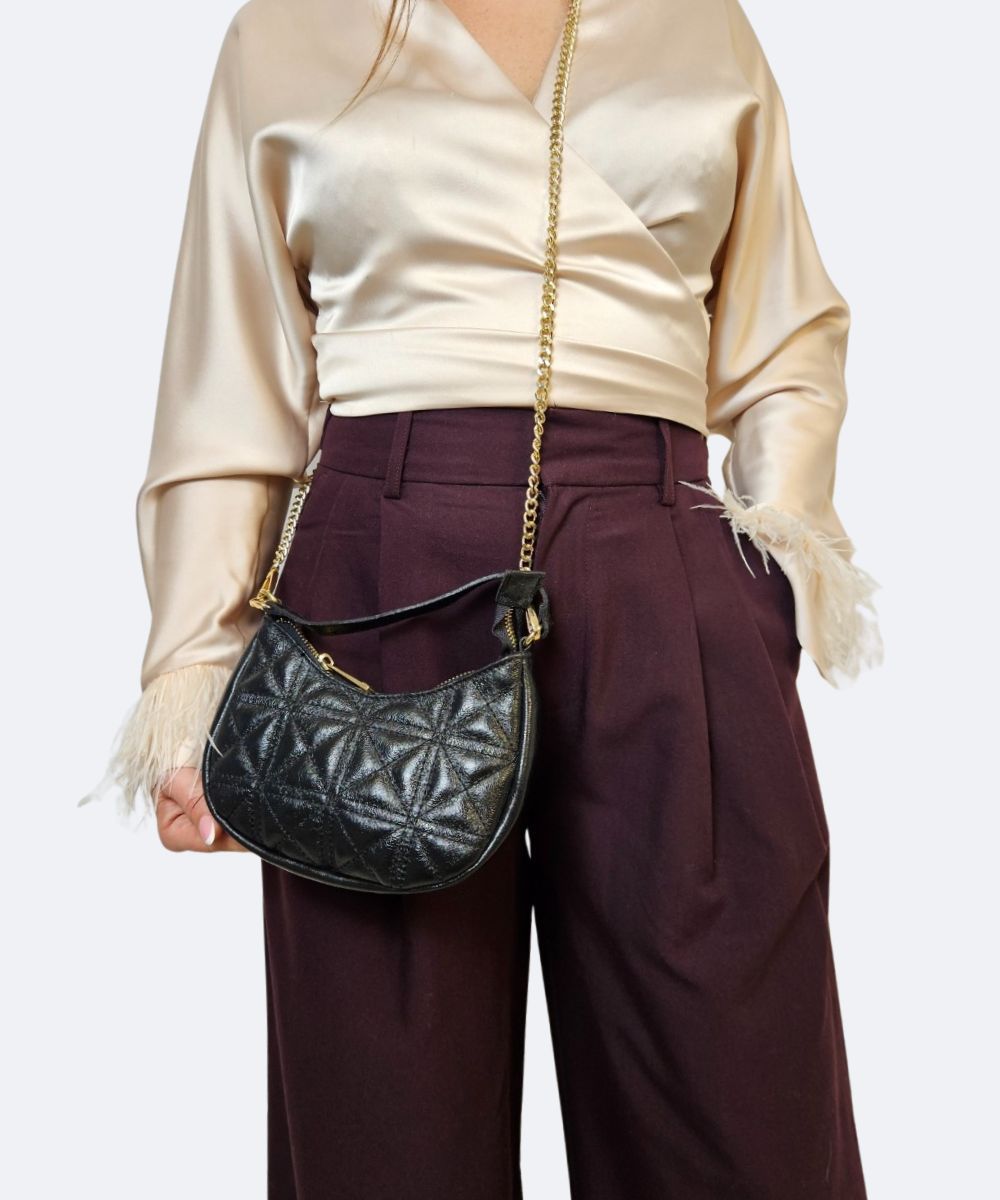 Ta urocza, mała torebka ze skóry naturalnej , to kwintesencja elegancji w kompaktowym wydaniu. Łączy w sobie stylowy design z funkcjonalnością, idealnie nadając się na wieczorne wyjścia, randki czy uroczystości, gdzie potrzebujesz zabrać tylko niezbędne drobiazgi. Torebka jest bardzo ładnie pikowana , posiada ucho do ręki i złoty łańcuszek na ramię .