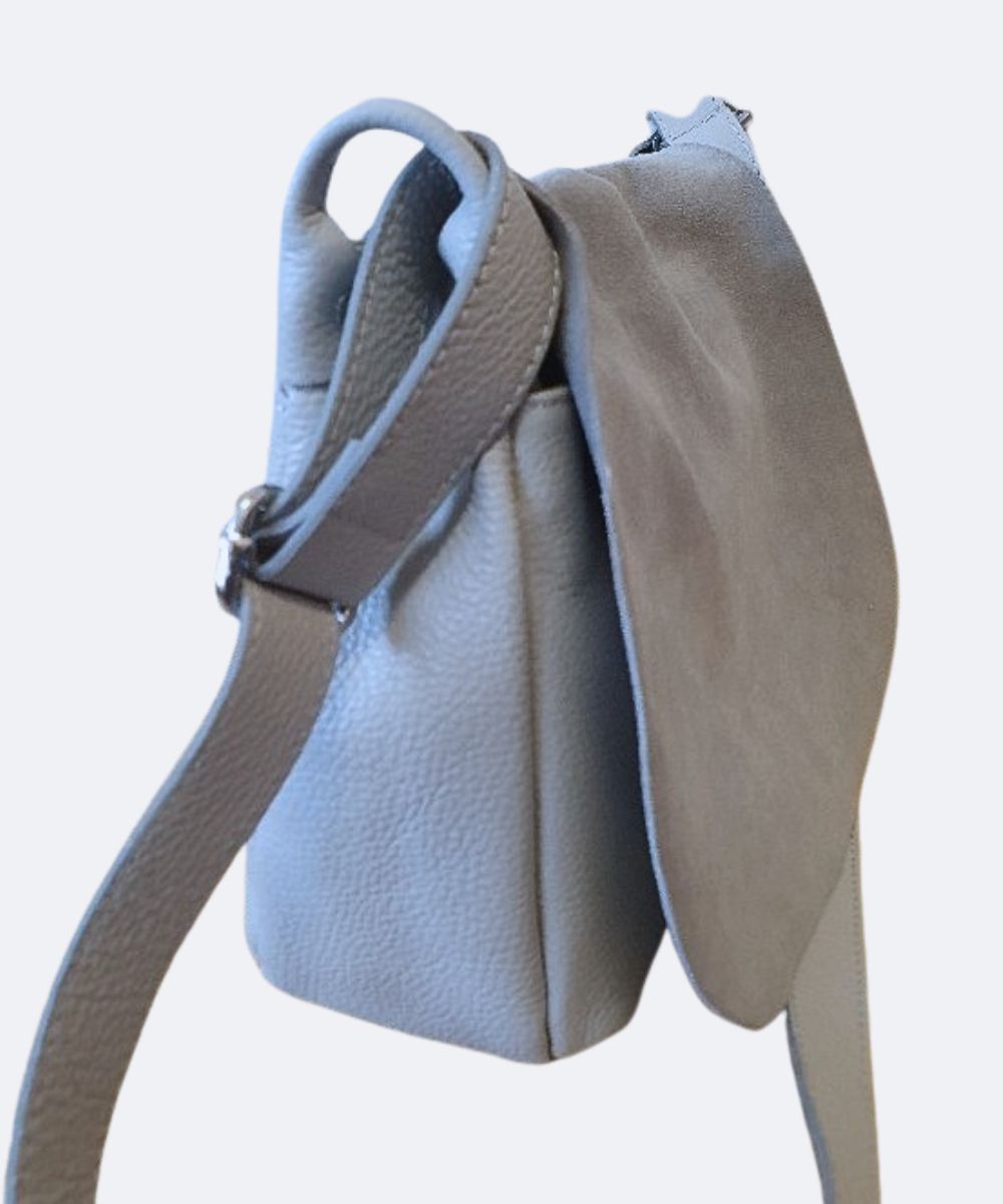 Torebka skórzana popielata na regulowanym pasku S012