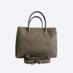 Elegancki model typu kuferek, wykonany z wysokiej jakości skóry licowej o groszkowanej strukturze. Ten konkretny fason charakteryzuje się klasycznym, lekko trapezowym kształtem.