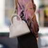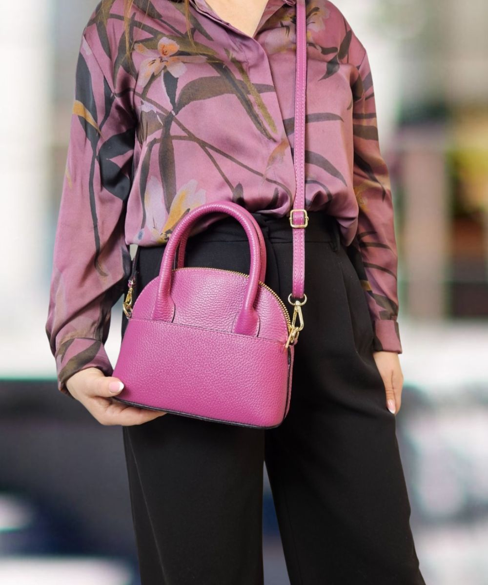 Mała zgrabna torebka skórzana z 2 rączkami . Torebka jest pakowna , zmieści telefon , portfel i zdrobiazgi , posiada dopinany pasek na ramię .