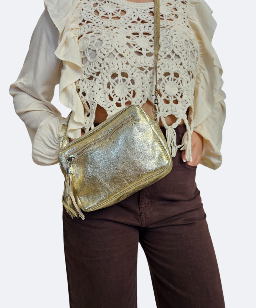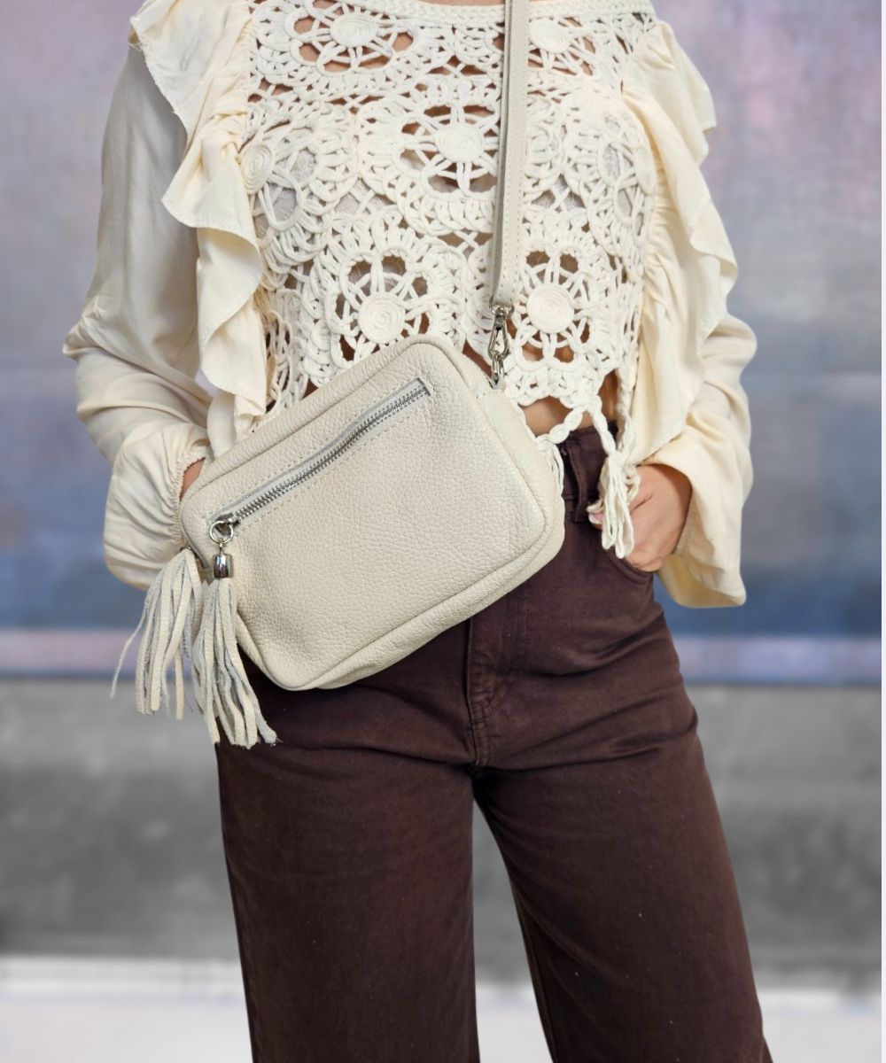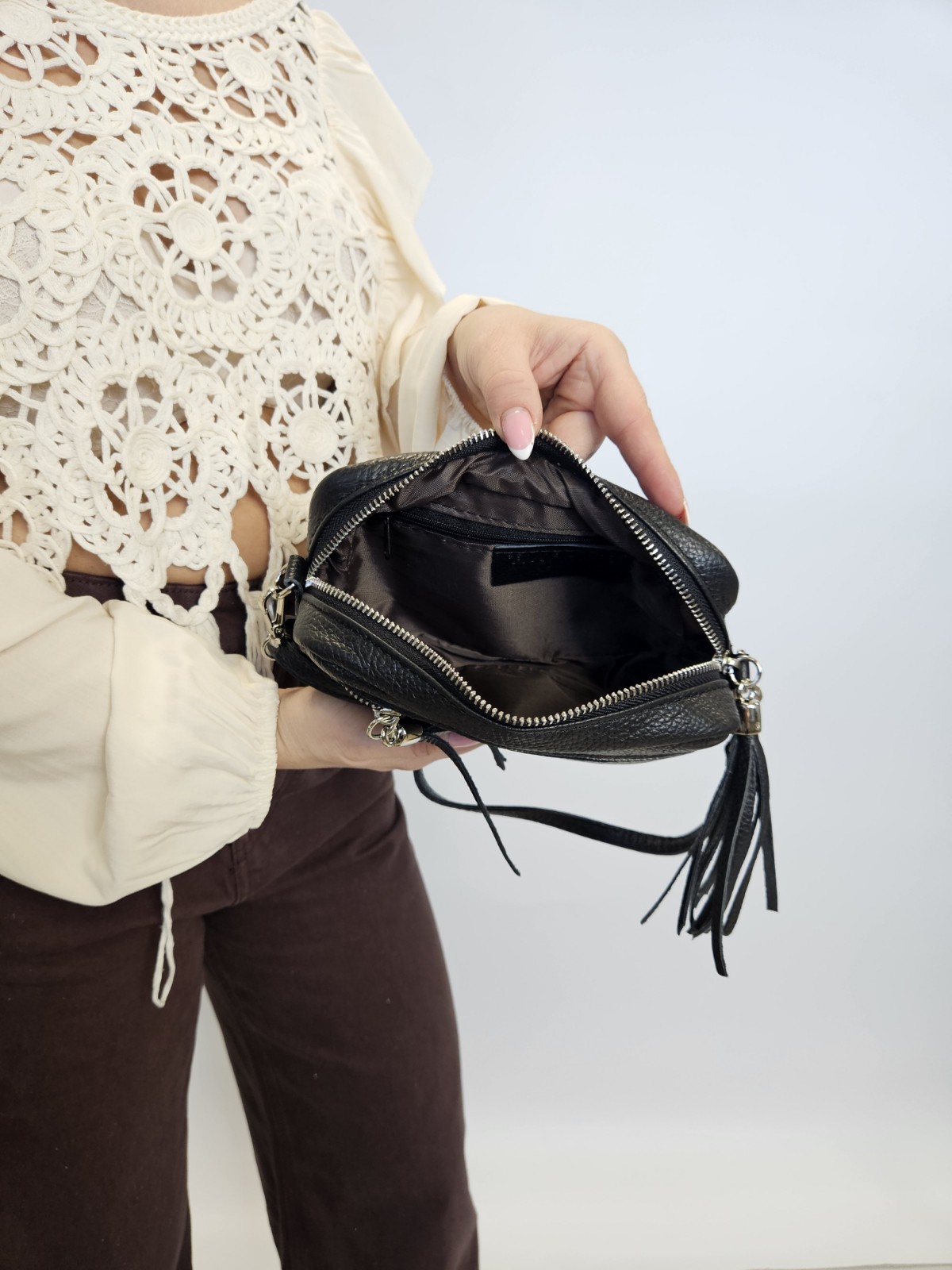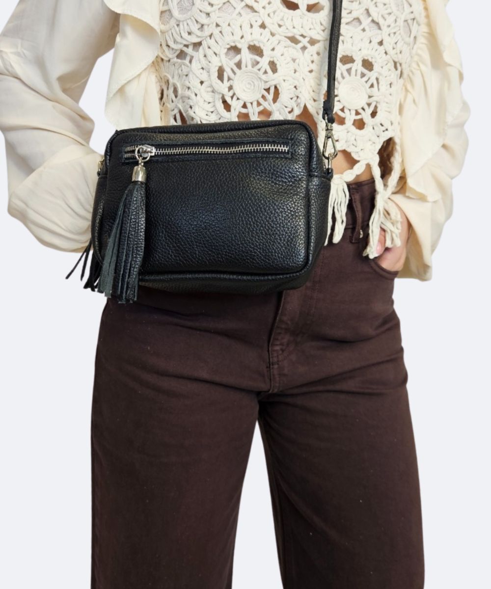 Torebka typu crossbody, wykonana ze skóry naturalnej.