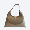Torebka typu worek/hobo o nowoczesnej, zaokrąglonej sylwetce z ozdobną, złotą klamrą na środku.