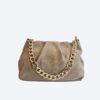 Elegancka torebka wykonana jest z miękkiej skóry zamszowej .Posiada duży, owalny łańcuch w kolorze złotym, służący jako uchwyt. Torebka ma marszczone otwarcie na zamek błyskawiczny . Często w zestawie znajduje się regulowany i odpinany pasek na ramię Charakteryzuje się trwałością i luksusowym wyglądem, często opisywana jako element wieczorowej garderoby dla osób lubiących się wyróżniać.