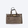 Torebka wykonana jest z naturalnego zamszu w kolorze brązowym lub taupe