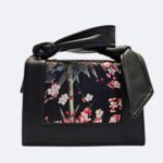 Elegancka torebka ze skóry sztucznej z motywem kwiatów na klapce doda szyku do twojego qutloku . Torebka ma szeroką rączkę wiązaną po jednej stronie ze srebrnymi okuciami . W środku torebki znajduje się kieszonka na zamek na dokument lub klucze . Cała torebka jest lekko usztywniana i zamyka się na klips i zasuwkę , posiada też dopinany pasek