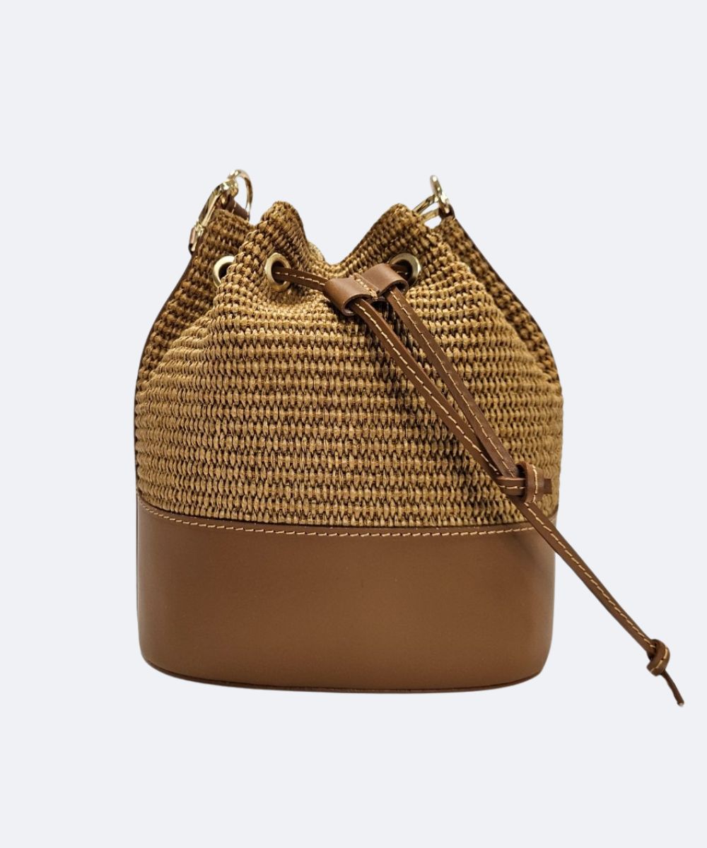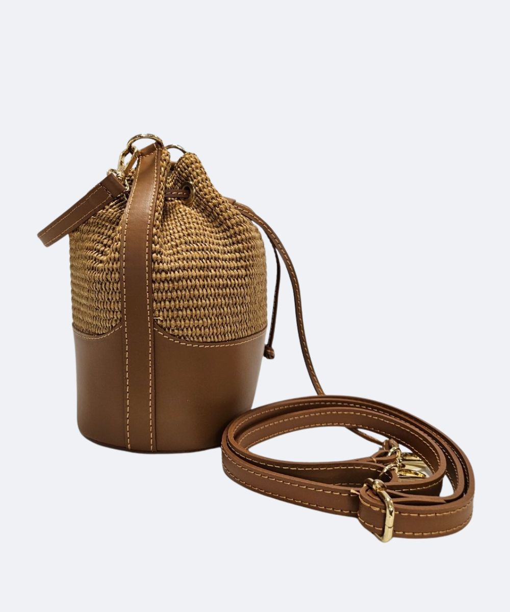 Odkryj torebkę bucket bag, niezbędny dodatek o fasonie kubełka, wykonaną z plecionej rafii i skóry . Ta torba o szykownym wyglądzie doda Twojej garderobie odrobinę elegancji. Lekka i praktyczna, idealnie nadaje się do stylowego noszenia niezbędnych drobiazgów .